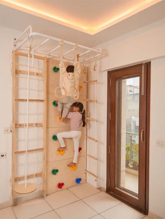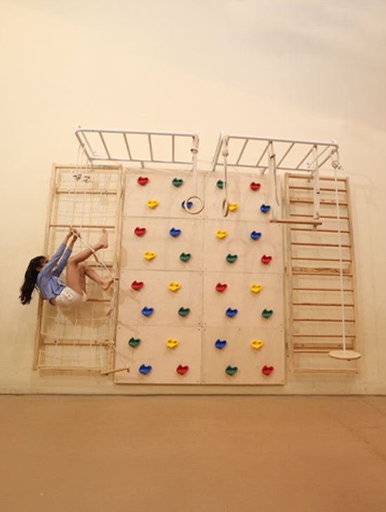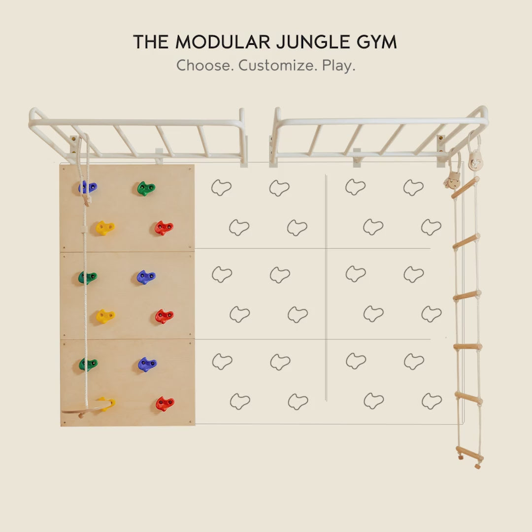 We designed the Modular Jungle Gym for relatively easy assembly, but it does require drilling into walls for stability.