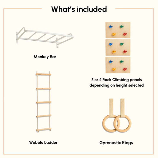 - Designed to evolve alongside your child’s physical journey, this system can be adjusted and expanded to match their growing skills and confidence, suitable for ages 4 to 15 years.