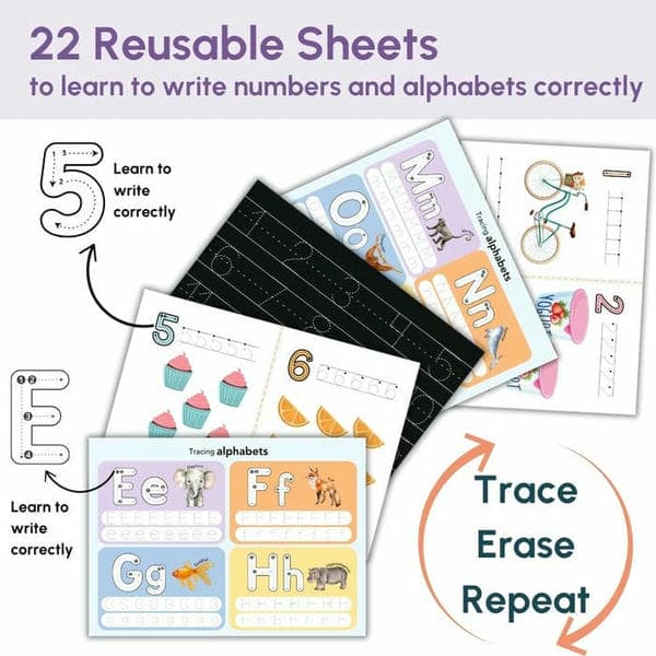 - 2 busy books that cover: Phonics, Counting, Sorting, Matching, Concepts like less or more, Sequencing etc.